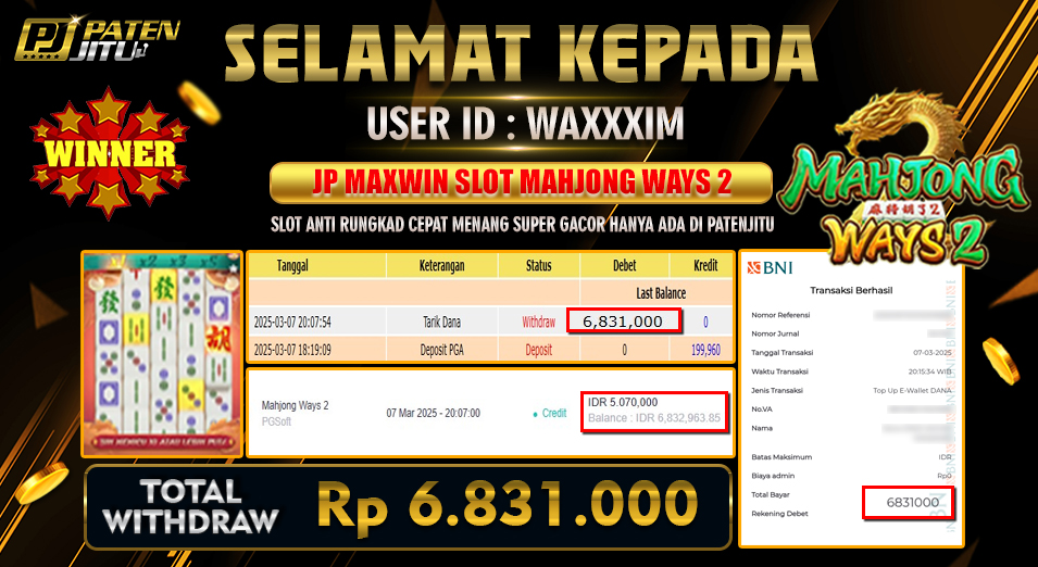• SLOT SUPER GACOR PASTI MENANG, DI PATENJITU MAIN SEBENTAR HASIL WD BESAR