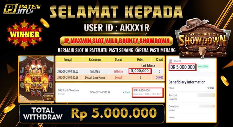 Hadiah telah di WD (Withdraw) oleh player yang bersangkutan Terima kasih untuk member setia kami telah mempercayakan PATENJITU sebagai BO pilihan anda. Post navigation MAINKAN SLOT WILD BOUNTY SHOWDOWN DI PATENJITU DAN DAPATKAN KEMENANGAN BOMBASTIS NYA MAEN DI PATENJITU MODAL ROLINGAN DAPAT HASIL KEMENANGAN