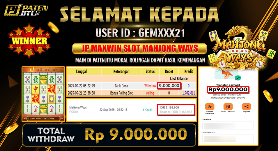 Hadiah telah di WD (Withdraw) oleh player yang bersangkutan Terima kasih untuk member setia kami telah mempercayakan PATENJITU sebagai BO pilihan anda. Post navigation BERMAIN SLOT DI PATENJITU PASTI SENANG KARENA PASTI MENANG RUNGKAD HANYA ILUSI MENDAPAT KEMENANGAN BESAR SUDAH PASTI DI PATENJITU