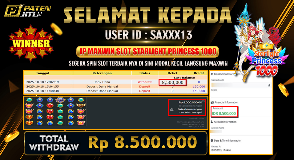 Hadiah telah di WD (Withdraw) oleh player yang bersangkutan Terima kasih untuk member setia kami telah mempercayakan PATENJITU sebagai BO pilihan anda. Post navigation SPIN SLOT NYA DI PATENJITU CUMA BUTUH WAKTU 5 MENIT TURUN PERKALIAN MAXWIN