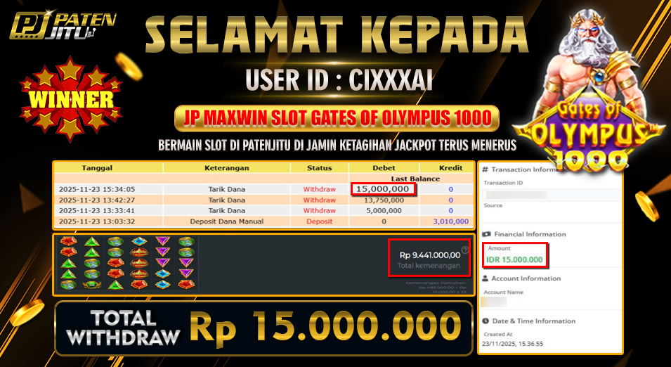 Hadiah telah di WD (Withdraw) oleh player yang bersangkutan Terima kasih untuk member setia kami telah mempercayakan PATENJITU sebagai BO pilihan anda. Post navigation RUNGKAD HANYA ILUSI KEMENANGAN SUDAH PASTI BOMBASTIS CARI YANG GACOR ADA DI PATENJITU SEKALI SPIN AUTO MAXWIN