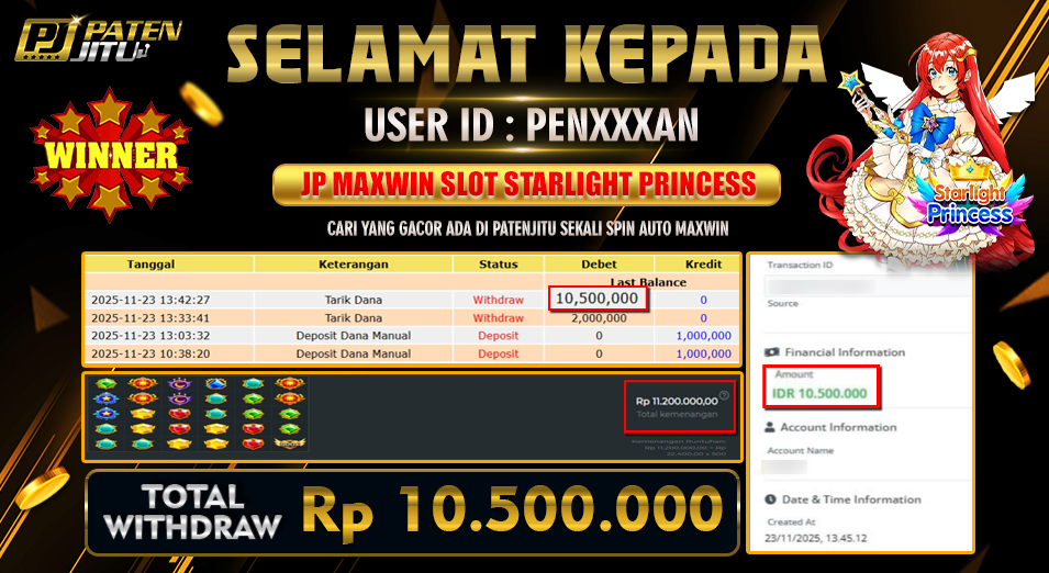 Hadiah telah di WD (Withdraw) oleh player yang bersangkutan Terima kasih untuk member setia kami telah mempercayakan PATENJITU sebagai BO pilihan anda.