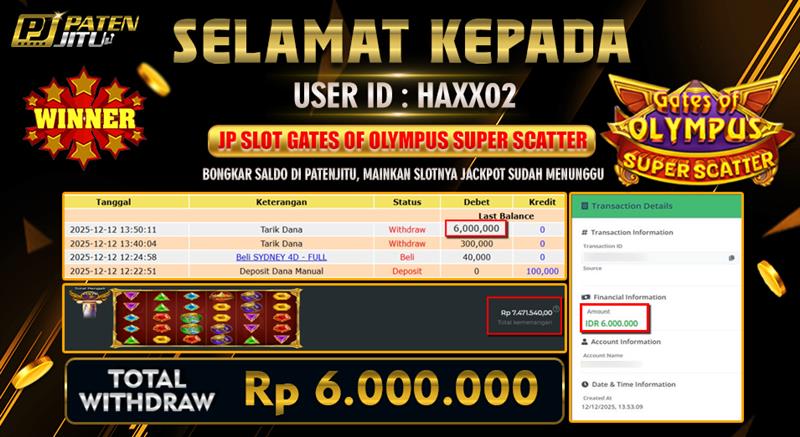 Hadiah telah di WD (Withdraw) oleh player yang bersangkutan Terima kasih untuk member setia kami telah mempercayakan PATENJITU sebagai BO pilihan anda. Post navigation MUDAH JACKPOTNYA PASTI WD NYA DI PATENJITU TERBUKTI GACOR SLOTNYA KEMENANGAN TERASA INDAH KETIKA DI CAPAI DI SITUS PATENJITU GACOR