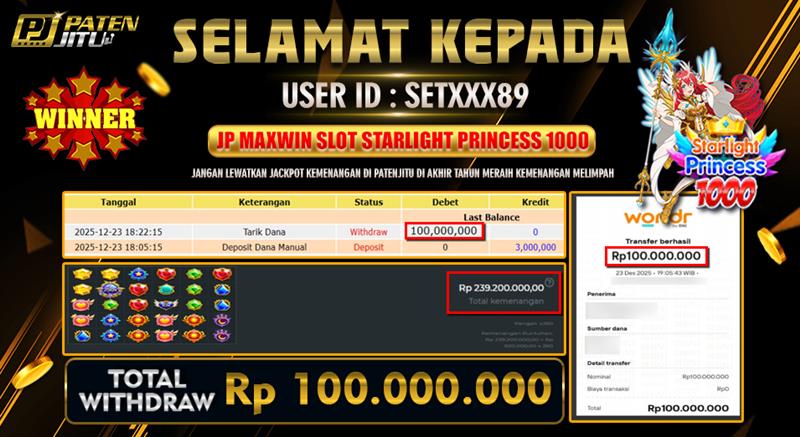 Hadiah telah di WD (Withdraw) oleh player yang bersangkutan Terima kasih untuk member setia kami telah mempercayakan PATENJITU sebagai BO pilihan anda. Post navigation JACKPOT PALING SUPER GACOR HANYA DI SITUS TERBAIK PATENJITU SUPER GACOR DAPATKAN SENSASI JACKPOT DAN PASTI WD NYA DI PATENJITU TERBUKTI GACOR SLOTNYA