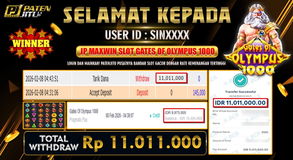 Hadiah telah di WD (Withdraw) oleh player yang bersangkutan Terima kasih untuk member setia kami telah mempercayakan PATENJITU sebagai BO pilihan anda.