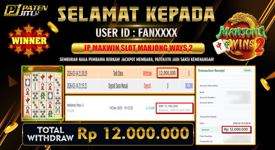 Hadiah telah di WD (Withdraw) oleh player yang bersangkutan Terima kasih untuk member setia kami telah mempercayakan PATENJITU sebagai BO pilihan anda.