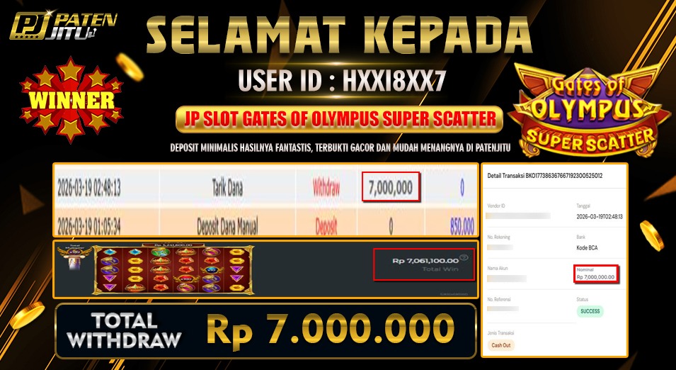 Hadiah telah di WD (Withdraw) oleh player yang bersangkutan Terima kasih untuk member setia kami telah mempercayakan PATENJITU sebagai BO pilihan anda.