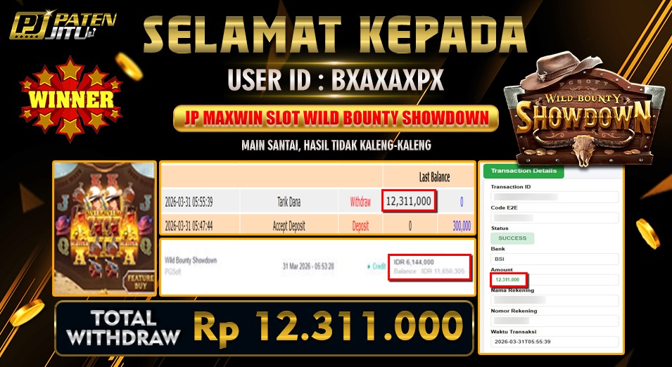 Hadiah telah di WD (Withdraw) oleh player yang bersangkutan Terima kasih untuk member setia kami telah mempercayakan PATENJITU sebagai BO pilihan anda.